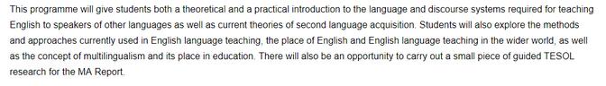 此外,还将有机会为硕士报告开展一小部分指导性的TESOL研究。