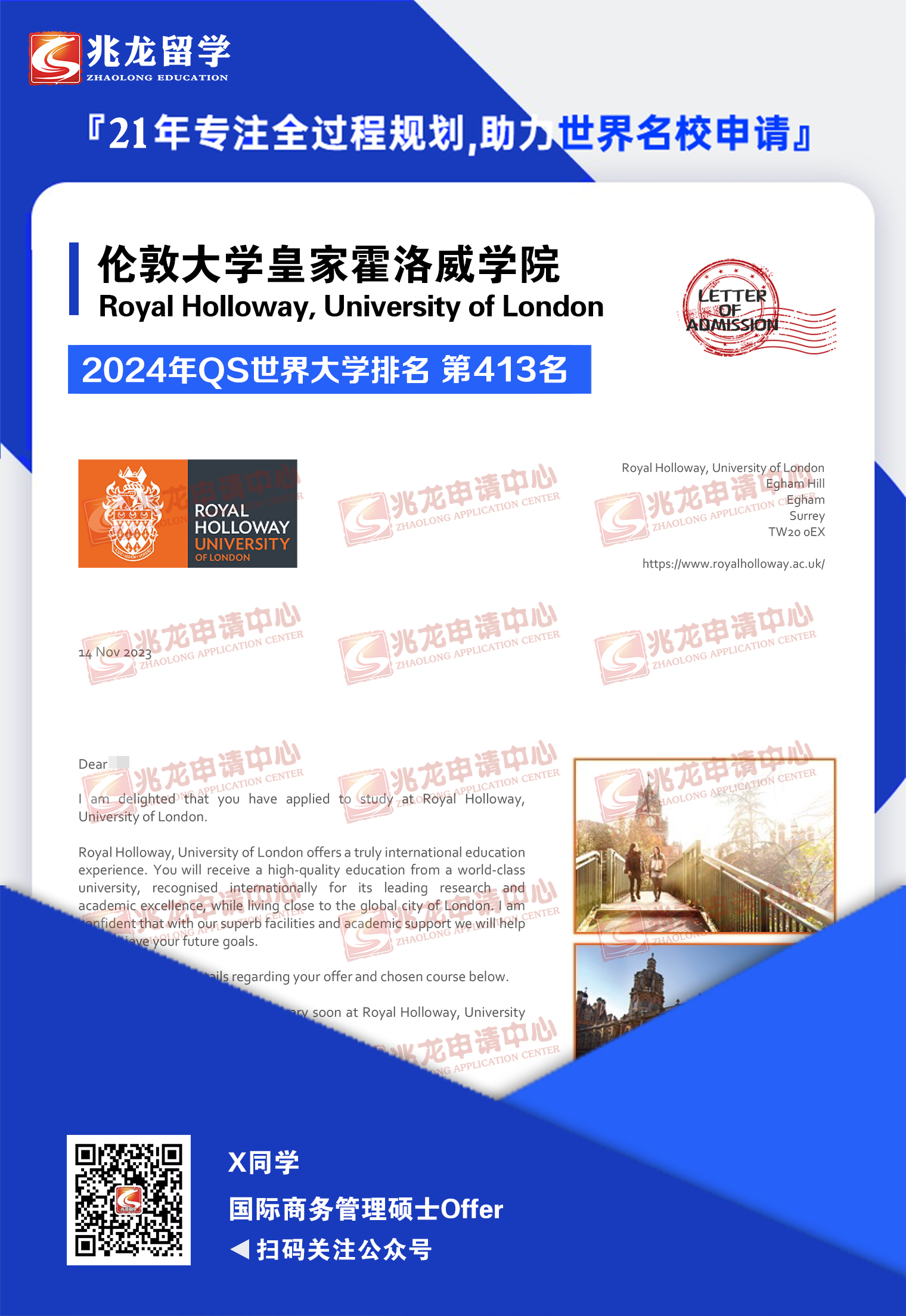 伦敦大学皇家霍洛威学院(Royal Holloway, University of London),简称“皇家霍洛威”“RHUL”,是一所坐落于英国大伦敦地区萨里郡(Surrey)艾格镇(Egham)的英国一流大学。2024年QS世界大学排名第413位。