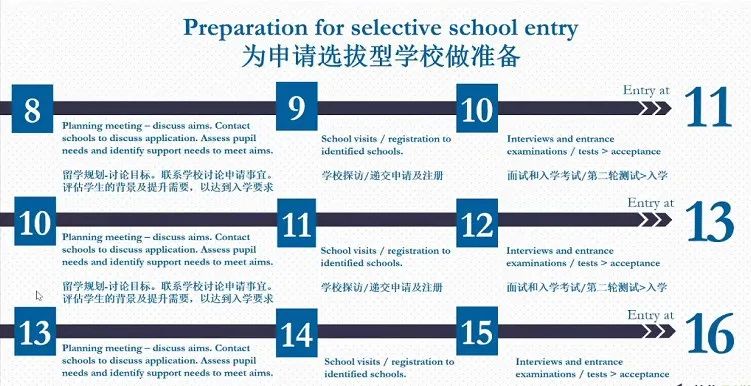 英国私校的申请,不仅仅是一个关键时间点的问题。私校的入学都有一套流程,开放日访校,到报名注册、参加考试、面试、发放Offer。光是走完这些流程就需要花费至少一年的时间,更不用说申请之前备考,最好基础能力的准备。