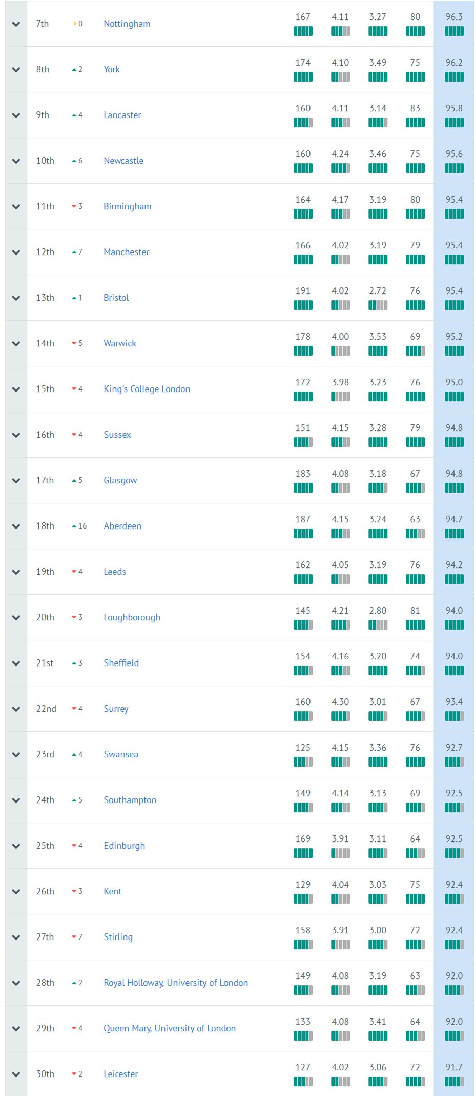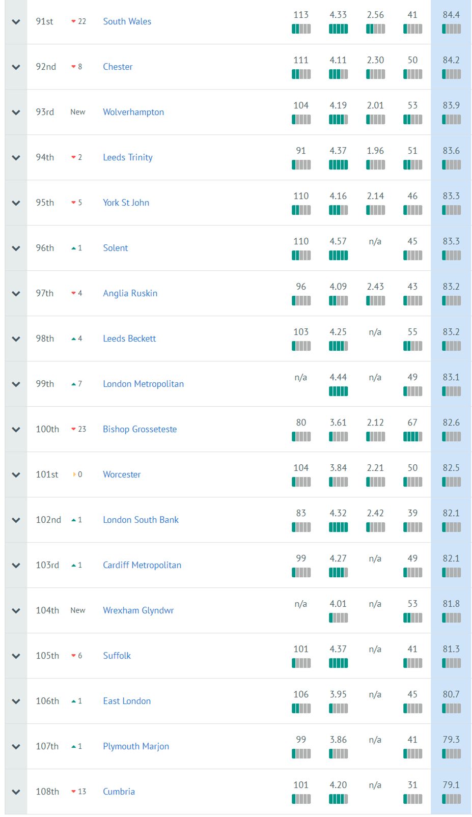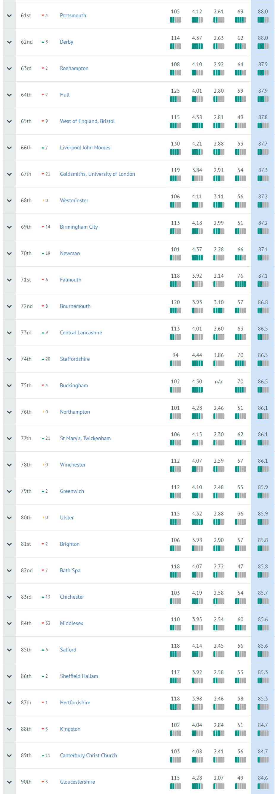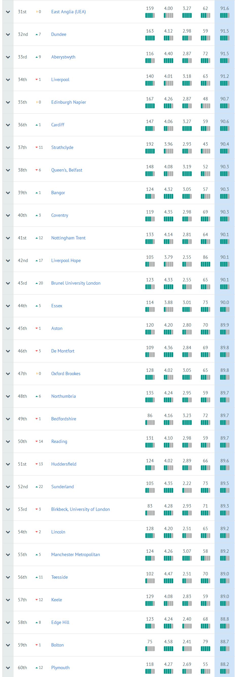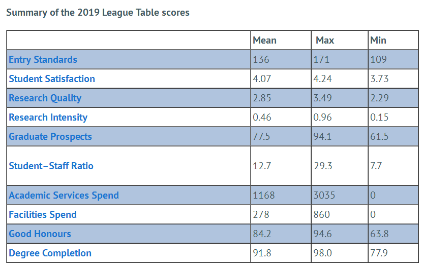 CUG的专业排名方法跟大学排名方法类似,不过只参考了其中的Student Satisfaction(学生满意度),Research Quality(科研质量),Research Intensity(科研强度),Entry Standards(入学要求),Graduate Prospects(就业前景)这五个方面!