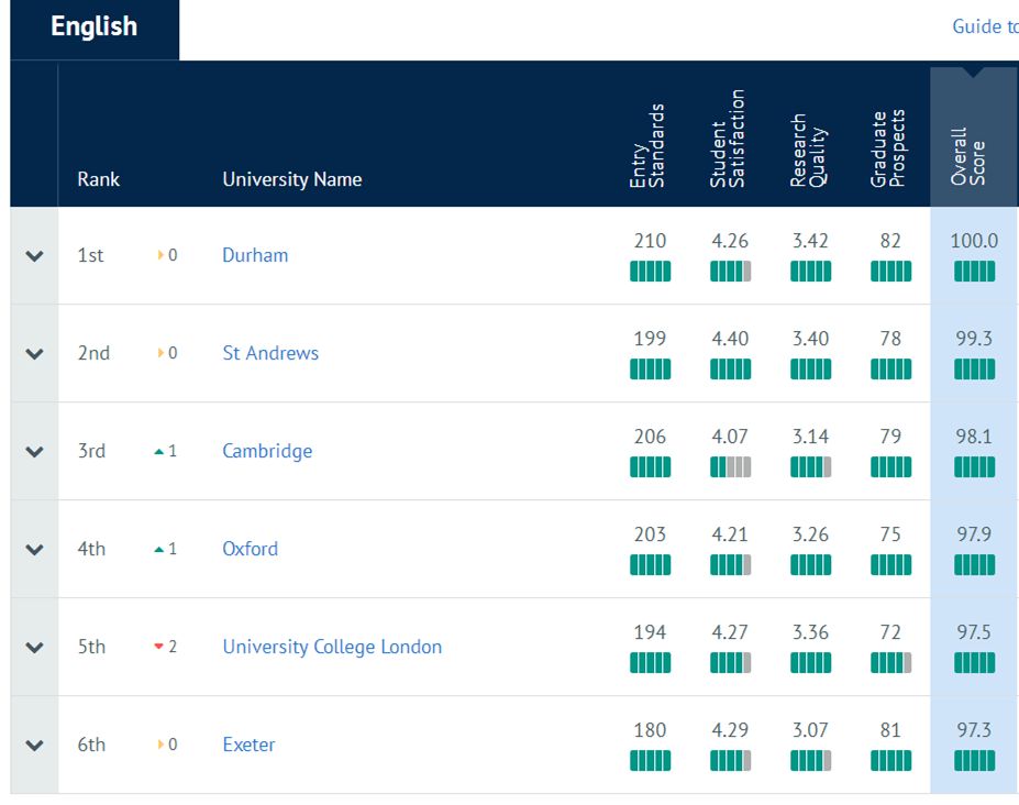 昨天给大家介绍了CUG2019年英国大学金融专业的排名,今天呢给大家介绍一下英语专业排名。