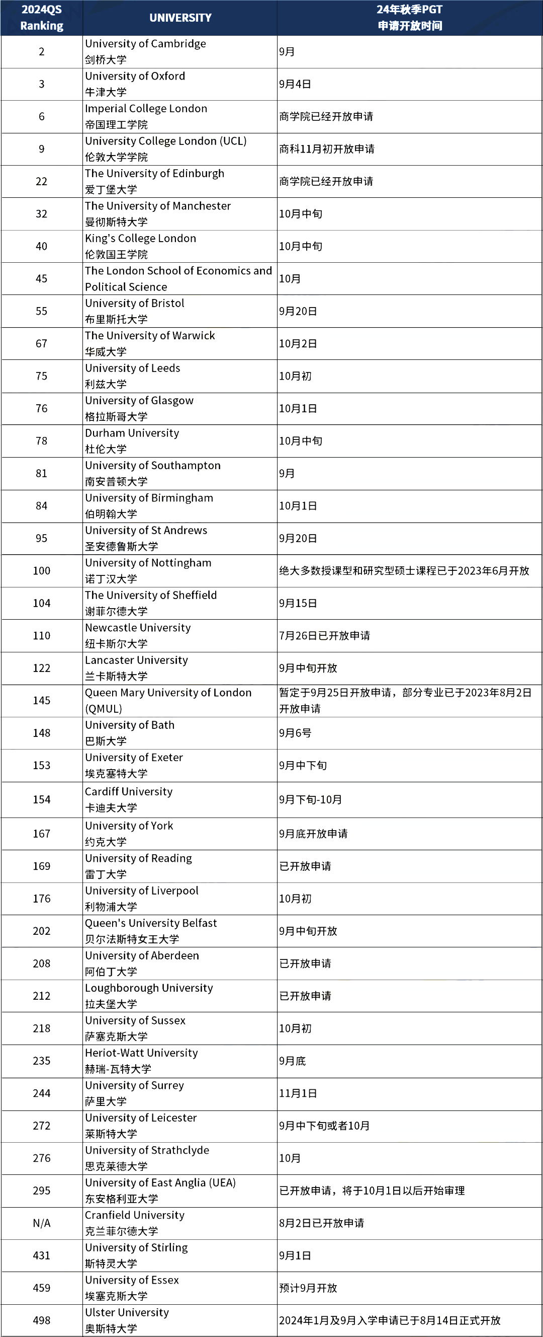 目前已有部分英国院校开放24fall入学申请,对于热门院校热门专业,如果申请人数过多,还有可能会提前终止申请,因此抢占申请先机尤其重要。