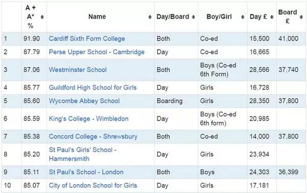 而且学生少于20人的学校A Level成绩也没有算在内,