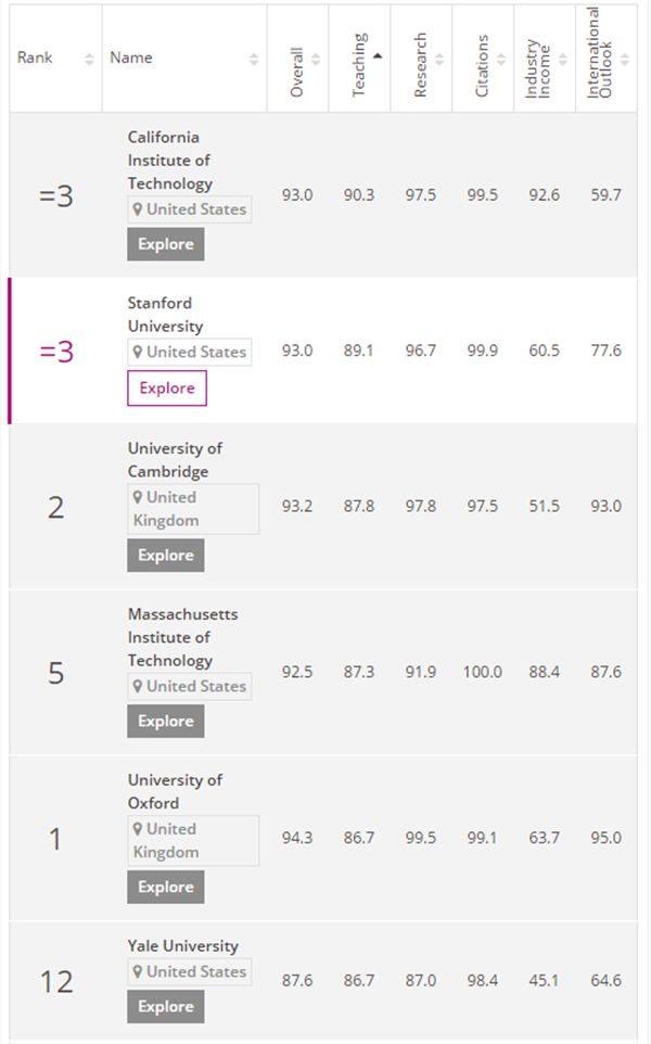 不过除了综合排名,各大学的教学质量咋样也是小伙伴们的重点关注对象,毕竟我们留学就是为了去学习的啊,老师教的不好也挺闹心的。THE的2018教学质量排名如下,小伙伴们找到自己心怡的梦校了吗?