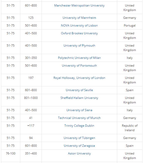 THE发布的排名将与学生息息相关的教学质量融入到排名算法中,这也是广大家长和留学生非常关注的。而且此次排名的数据主要是从十个欧洲国家的3万名学生的问卷调查中汇总分析得来的。