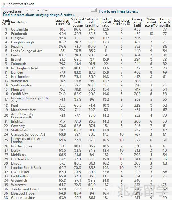 据最新消息得知,2016年英国《卫报》发布了英国大学综合排名,同时,《卫报》更根据各学校的学术等各方面表现进行了专业排名。以下是兆龙留学专家为大家介绍的2016《卫报》英国大学设计与工艺专业排名可以看出,此次排名位于首位的是伦敦大学金史密斯学院,第二名爱丁堡大学,第三名为格拉斯哥大学。