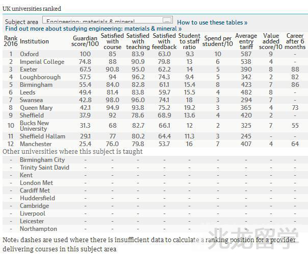 据最新消息得知,2016年英国《卫报》发布了英国大学综合排名,同时,《卫报》更根据各学校的学术等各方面表现进行了专业排名。以下是兆龙留学专家为大家介绍的2016《卫报》英国大学材料与矿物工程专业排名可以看出,此次排名位于首位的是牛津大学,第二名帝国理工学院,第三名为埃克塞特大学。