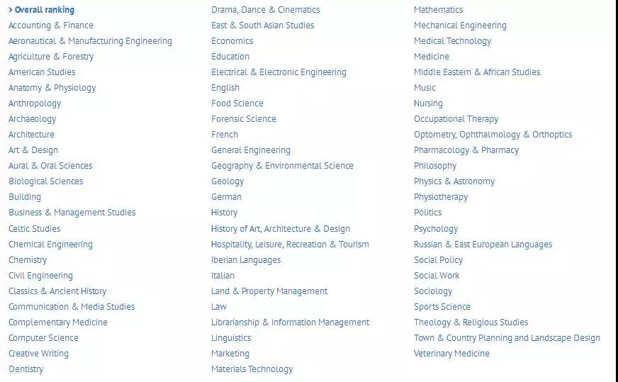The Higher Education Statistics Agency英国高等教育统计机构提供入学标准、师生比例、用于学术研究的费用、用于学校设施的费用、获一等或二等一学位学生比例、就业前景、毕业率和国际生入学率。