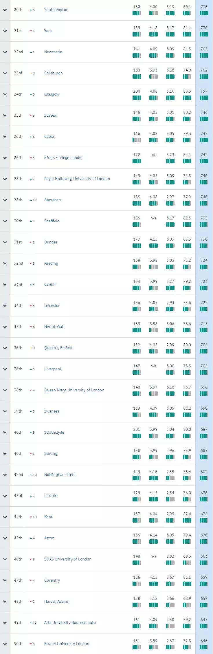 NationalStudent Survey英国学生满意度调查,2014 Research Excellence Framework 2014年研究卓越框架。