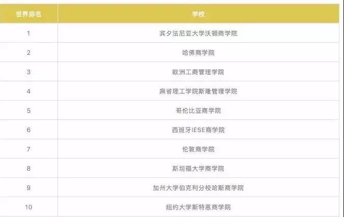 哈佛大学商学院则赢得了第二名,欧洲工商管理学院紧随其后,排名第三。