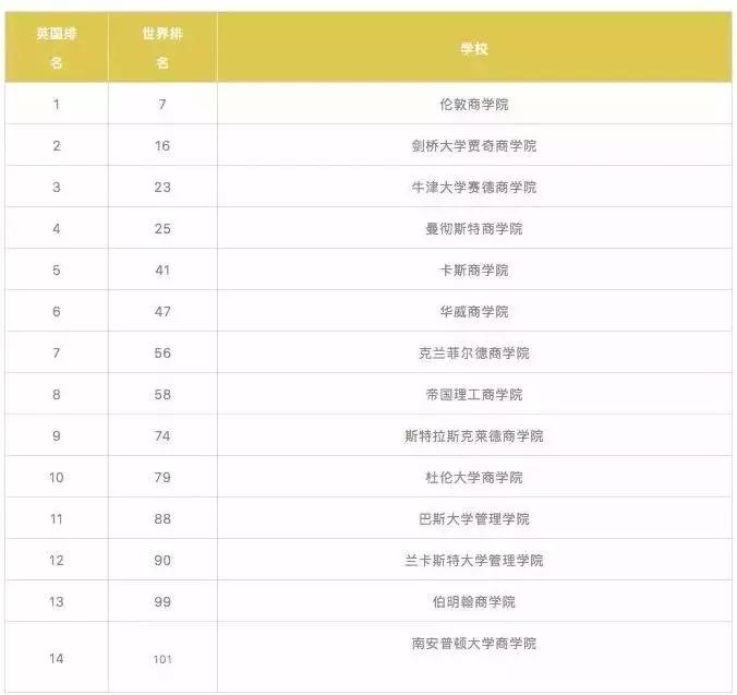 小编贴心地单独拉出在此排名中,英国商学院的排名情况: