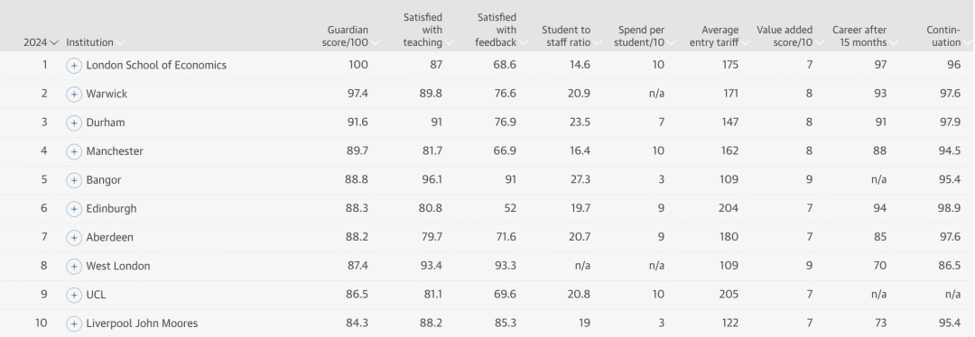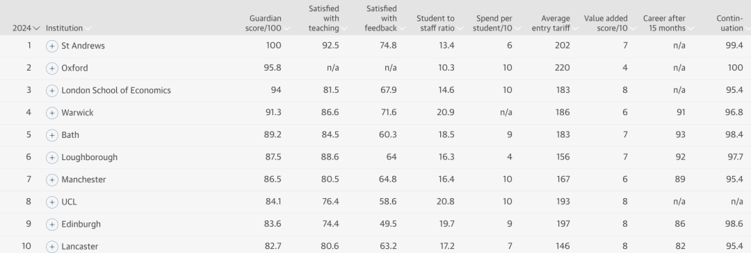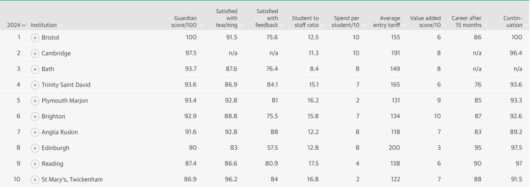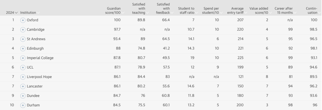 而原因也很简单,根据卫报的衡量指标来看,卫报排名综合了教学满意度、课程满意度、学生教员比例,学生人均花销,本科平均成绩,毕业后半年就业情况,大一后升学率等,评估指数更倾向于学生的体验。