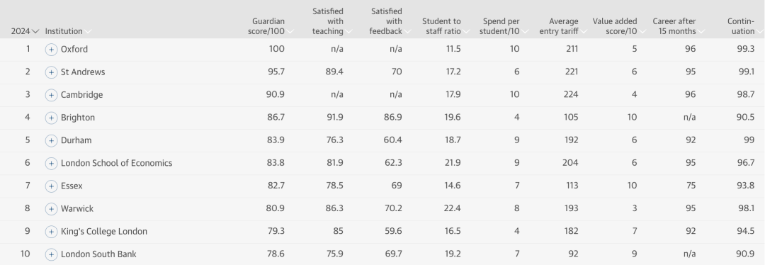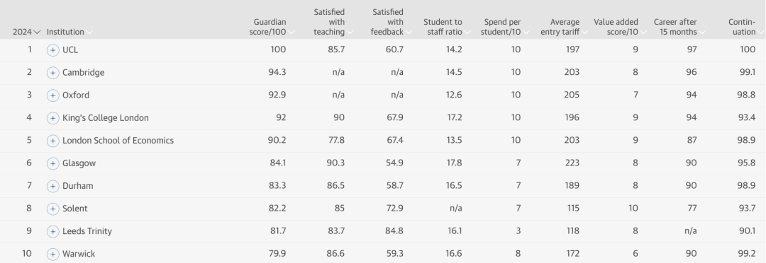 这么看来,如果说QS和《泰晤士报》发布的排名倾向于综合和学术评估,那么《卫报》发布的排名则是更加以学生体验和个人发展为主,这也是为什么这份排名在英国本地学生心目中分量很重,也经常为我们所借鉴参考。