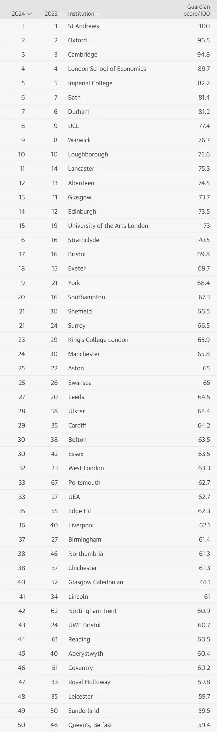 近日,英国《卫报》(The Guardian)重磅发布了2024年英国大学排名!
