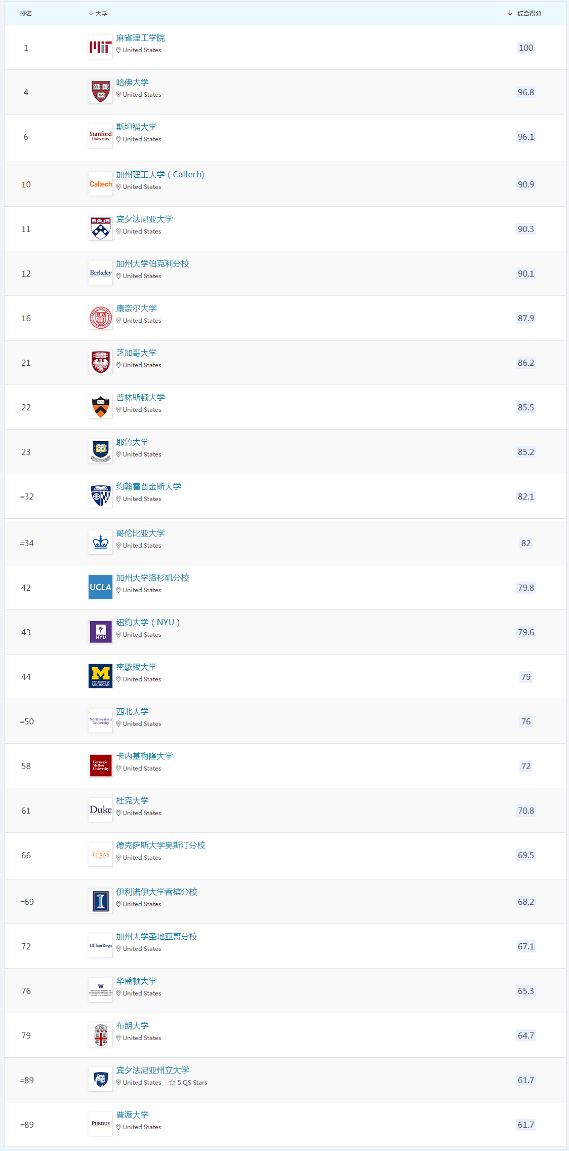 美国麻省理工大学MIT继续创造历史,连续13年稳坐QS综排霸主,地位无人能敌;