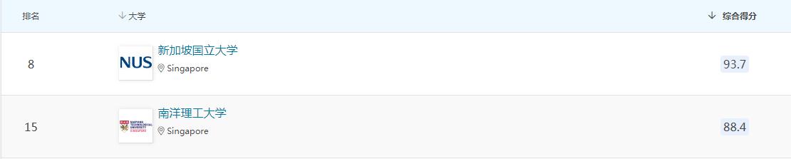 新加坡国立大学跻身全球前10,位列第8。