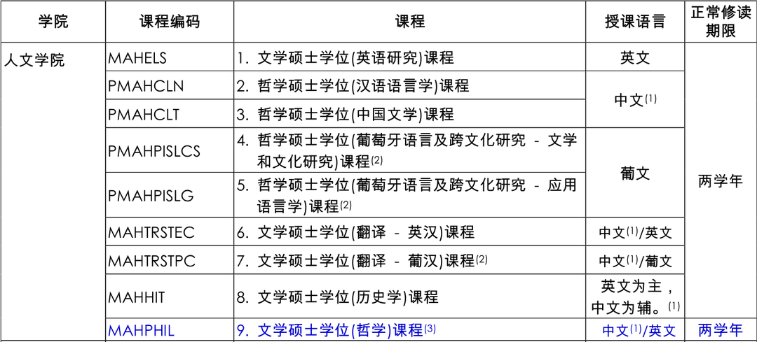 澳大共11大学院(人文学院、工商管理学院、教育学院、健康科学学院、法学院、社会科学学院、协同创新研究院、中华医药研究院、微电子研究院、科技学院、应用物理及材料工程院)提供多个硕士课程供内地生申请。