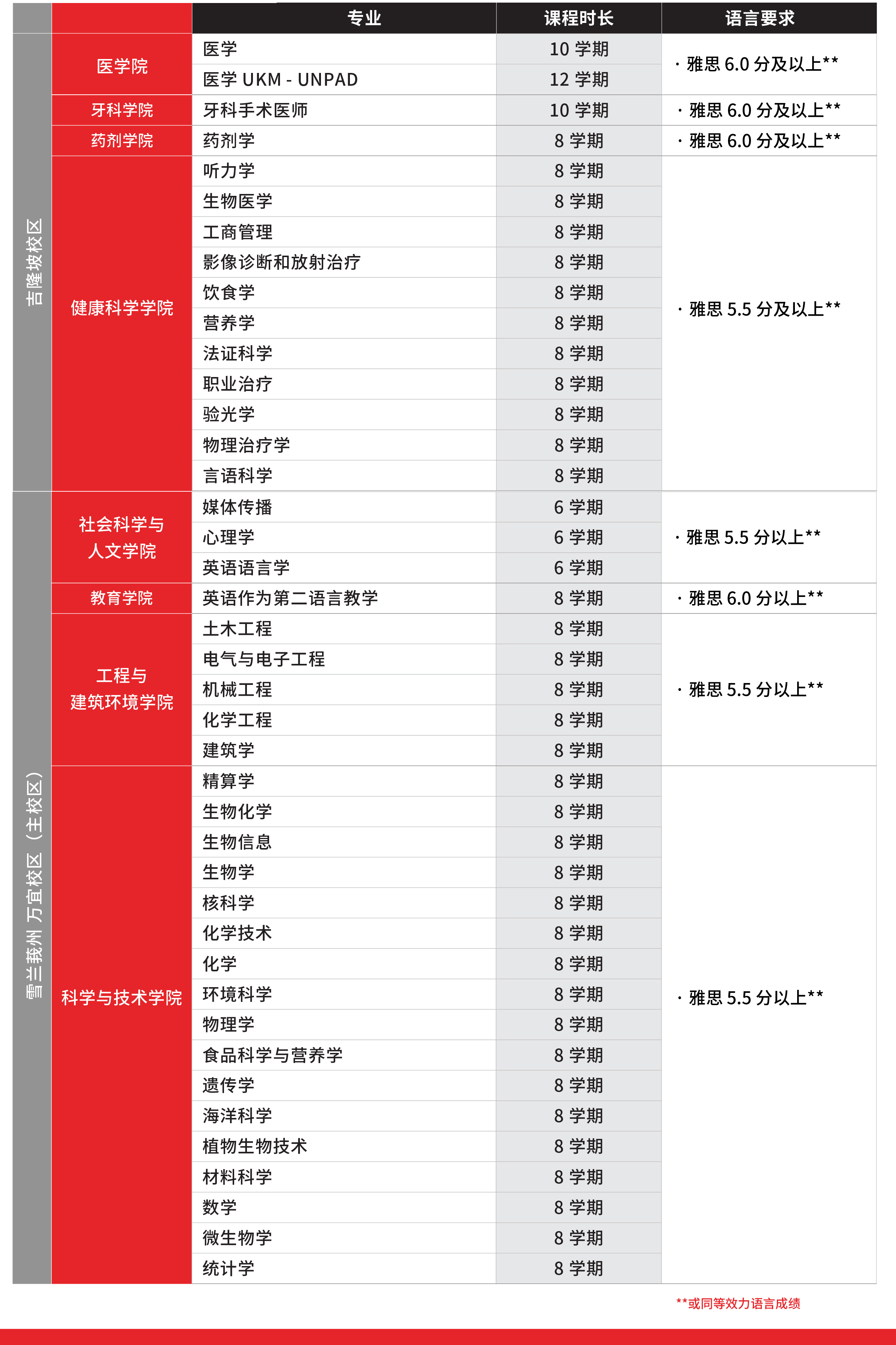 马来西亚公立大学的国际排名近些年逐年递增,院校知名度也十分强大。公立大学学制一般是 3 - 4 年( 根据不同大学课程要求),英语 & 马来语授课模式 ( 国际生仅可以选择开放英文授课的专业)。
